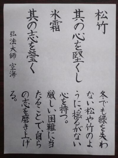 『松竹 其の心を堅くし 氷霜 其の志を瑩く』 弘法大師 空海